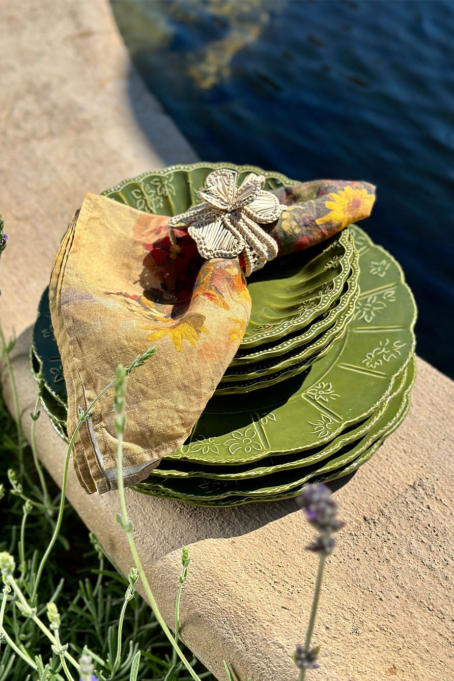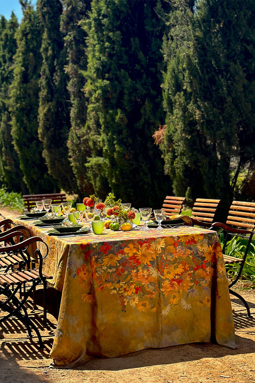 Complete your table setting with the ‘Fleurs des Prés’ napkins, crafted from 100% pure French linen. Their delicate, painterly wildflower design mirrors the tablecloth, bringing a subtle touch of autumnal warmth to every place setting and turning everyday dining into a celebration of nature’s beauty.